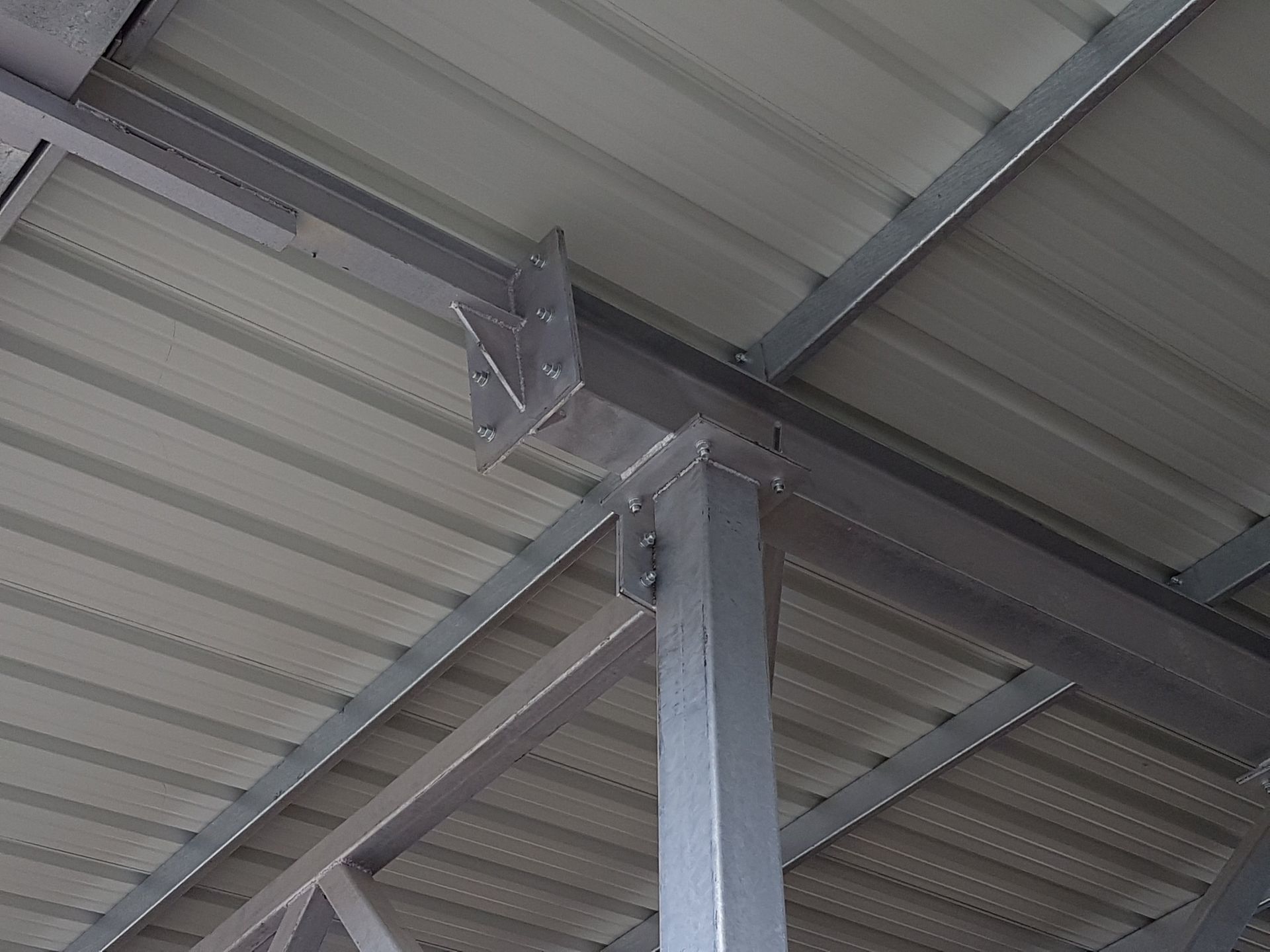 באותו הזמן שעבודות הבטון התבצעו באתר הקונסטרוקציה נבנתה במסגרייה שלנו כאשר כל פרטיי החיבור נעשו ע"י פלטות פח עם חורים. הקונסטרוקציה נבנתה ממוטות פלדה שחורים אשר נשלחו לגלוון חם לאחר הייצור, ומהגלוון ישירות לאתר להרכבה.